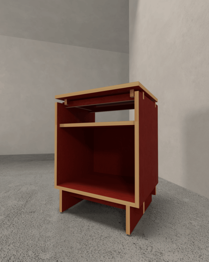 Với kết cấu tối giản từ ván Plywood phủ màu, lộ ra phần cạnh viền tạo hiệu ứng tương phản nổi bật và cá tính.