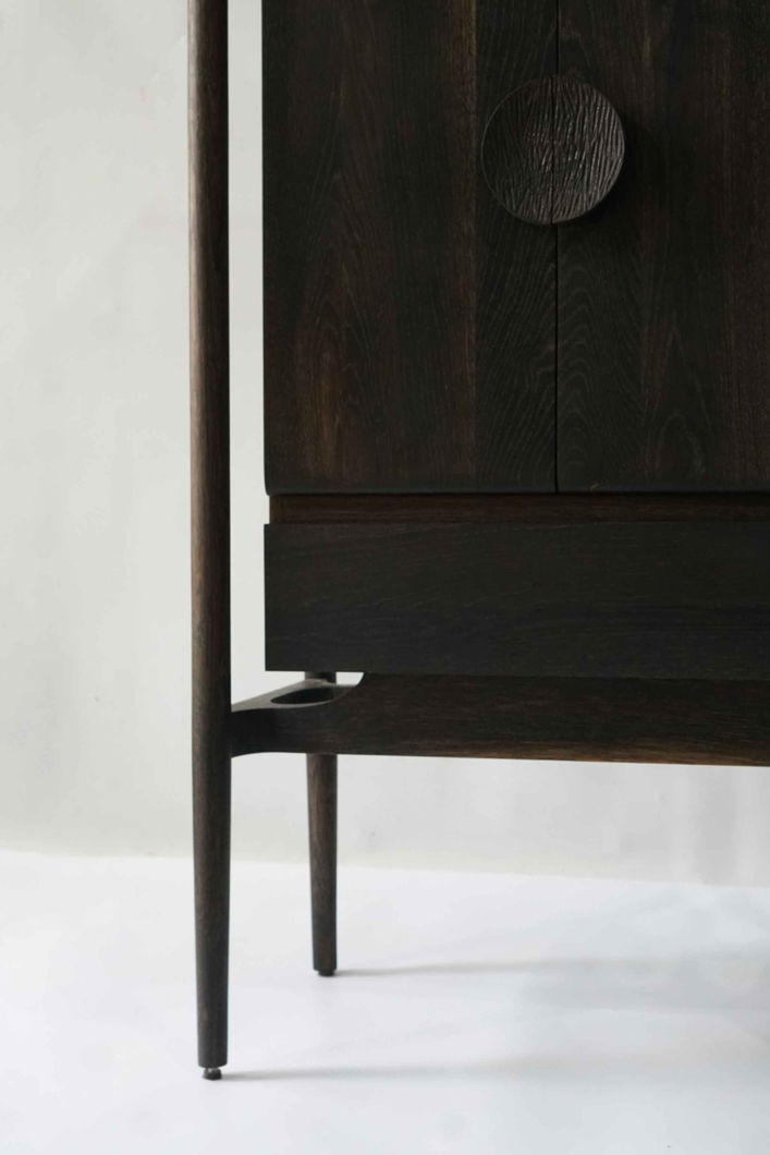 STILL được thiết kế để giữ trọn tinh thần ấy. Với dáng đứng gọn gàng, kín đáo nhưng không nặng nề, tủ thờ phù hợp với nhiều không gian sống hiện đại – từ nhà phố đến căn hộ. Các chi tiết được tiết chế tối đa nhưng vẫn đủ độ trang trọng, từ tay nắm âm tròn cho đến đường vân gỗ nổi rõ trên nền nhuộm ebonize tự nhiên.